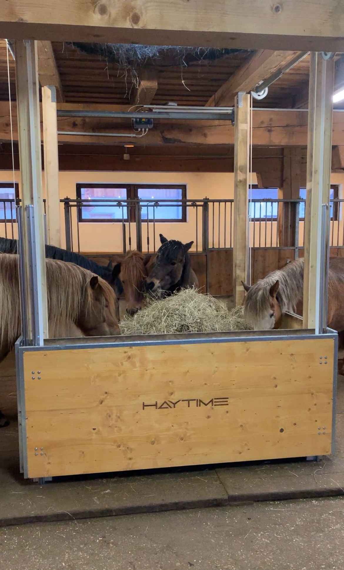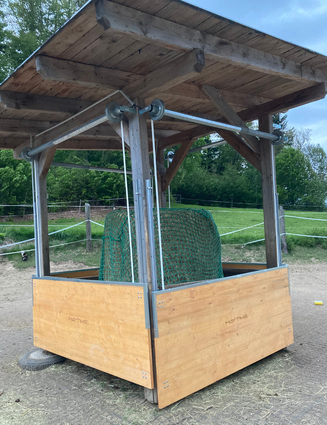 Auf den Fotos siehst du sowohl von Haytime umgerüstete Raufen als auch Raufen, die von unseren Kund:innen selbst umgebaut wurden.